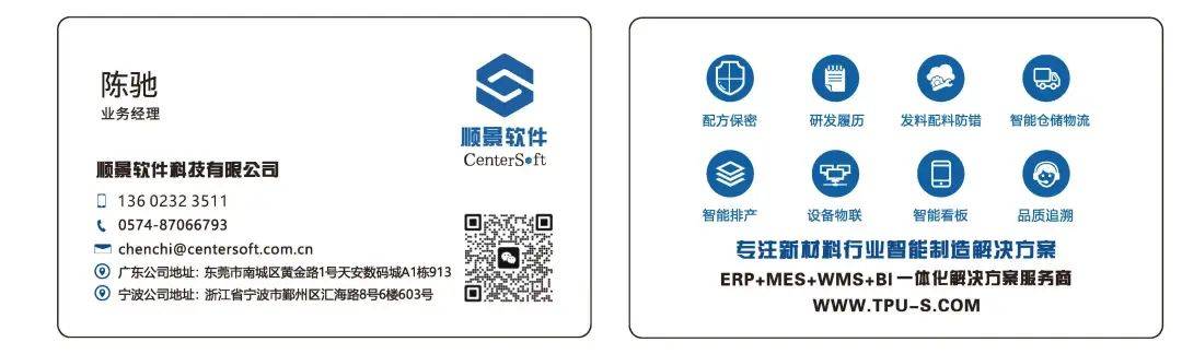 广东安拓普聚合物科技有限公司研发总监李同兵博士从与顺景合作以来安拓普聚合物实施数字化改造以来的变化及自己的感悟对安拓普数字化工厂的核心优势概括为物流、信息流、财务流三流合一,生产及物资状态实时监控,研发成果与生产状态实时关联,人员与财务成本核算实时更新,客户可实时对产品质量进行追溯。安拓普通过对生产车间现状和生产流程进行了全面的数字化升级后,通过数据的收集和分析,实现了生产过程的实时和优化,大幅提高了产品质量和生产效率。