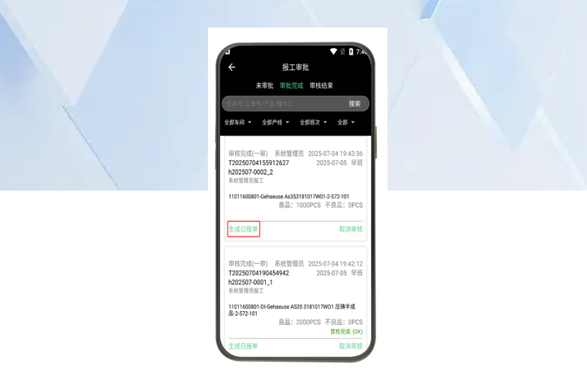 建立现场人员报工数据的审批稽核机制,通过双重验证确保数据准确性