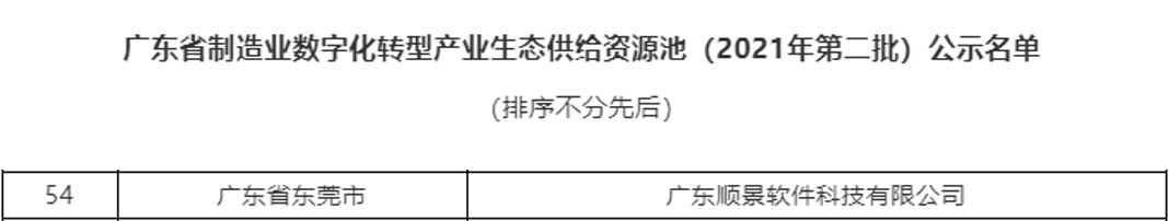 近日,广东省工业互联网产业联盟公示了2021年第二批“广东省工业互联网产业生态供给资源池”企业名单,顺景软件列位其中。顺景软件正式加入广东省工业互联网产业联盟,成为整个联盟会员大家庭中的一员。这是对顺景软件工业互联网产品与服务团队能力的高度认可。